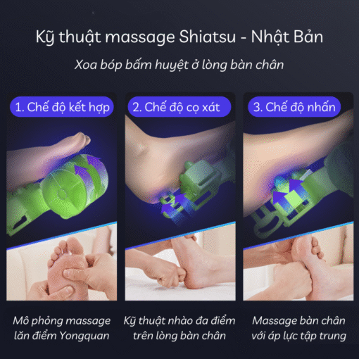 - Tăng cường sự linh hoạt và dẻo dai của cơ: Các trục xoay và con lăn của máy massage chân tác động vào các nhóm cơ và huyệt đạo ở gan bàn chân giúp làm giảm đau và cảm giác khó chịu do căng cứng cơ, nâng cao sự linh hoạt của các khớp và cơ ở khu vực bàn chân.