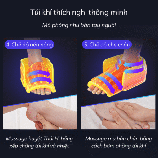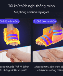- Sưởi ấm hồng ngoại xa: Chức năng trị liệu bằng massage nhiệt giúp các huyệt đạo ở vùng vòm bàn chân, giống như massage nén nóng chuyên nghiệp, truyền nhiệt vào cơ thể con người, loại bỏ mệt mỏi, lưu thông tuần hoàn máu.