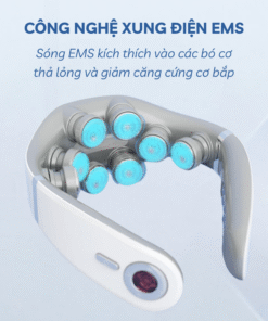 - Công nghệ xung điện EMS: Xung điện EMS tác động trực tiếp vào các bó cơ nhằm kích thích cơ bắp, giảm tình trạng căng cứng. Điều này giúp cải thiện sự co bóp và giãn ra của bó cơ. Từ đó phục hồi cơ bắp giảm đau cơ hiệu quả, đồng thời cải thiện sự linh hoạt cho vùng cổ.
